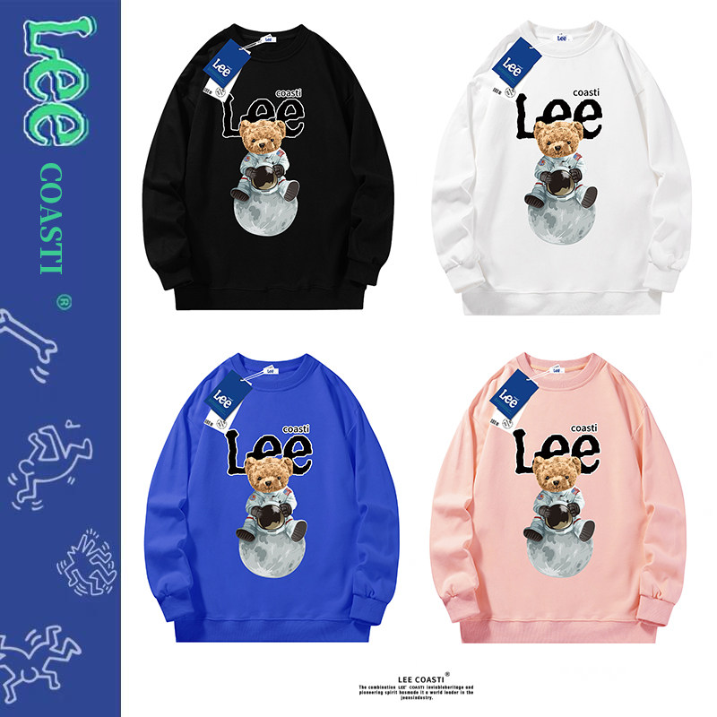 NASA tide brand bear ins tide couple autumn and winter oversize American boys thick T-shirt men's spring tops