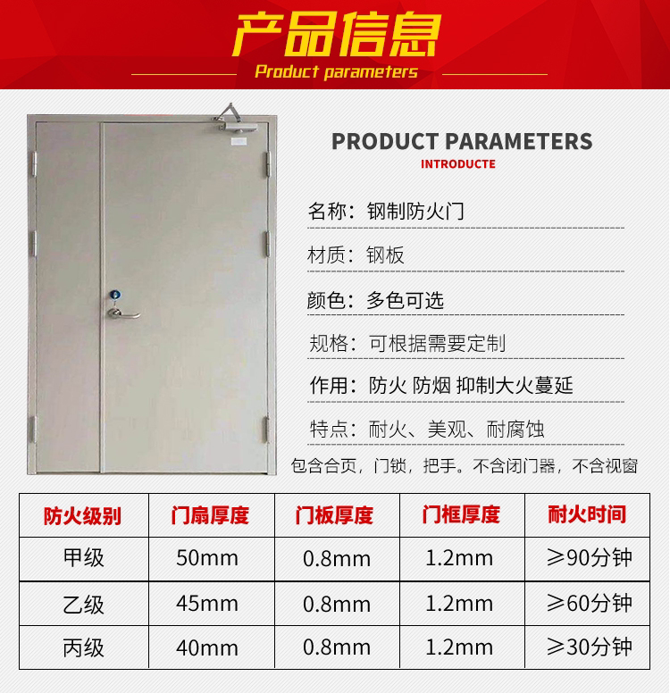 Manufacturer Direct sale steel fireproof door A grade A steel home hotel channel Kitchen Safety Engineering Fire Door