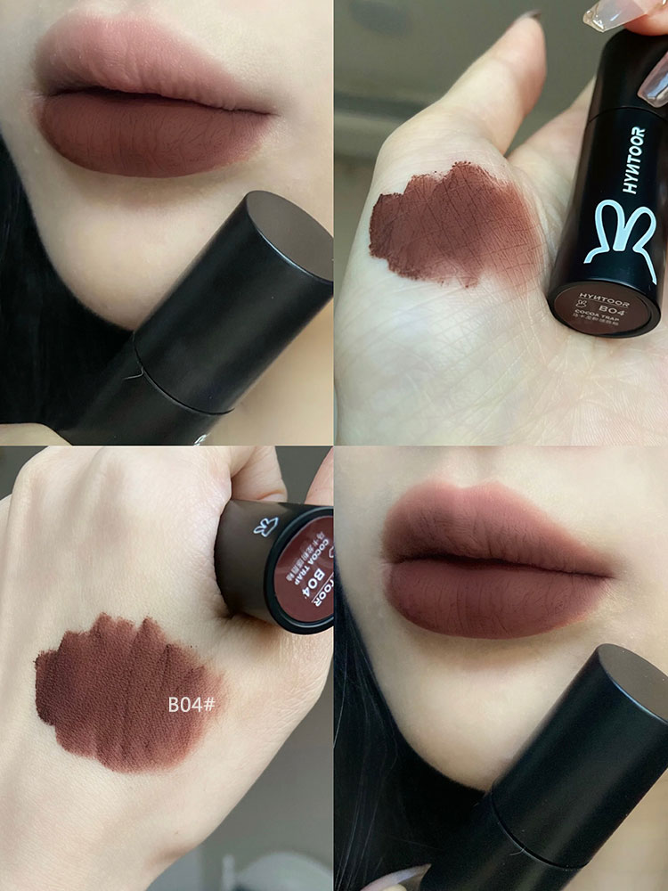 Dark Black Macaron Lip Mud HYNTOR Black Rabbit Lip Mud B04 Matt Mist Surface Mouth Purple B06 Mouth Brown B05