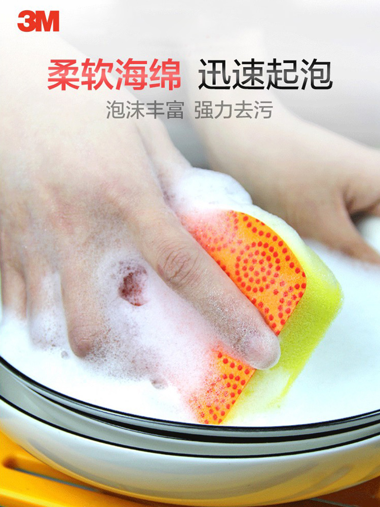 3M Sigao double-sided sponge scouring cloth Jieli bean magic wipe without gauze dishwashing cloth kitchen brush bowl brush pot rag