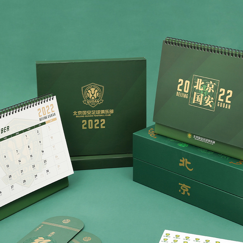 (spot) Beijing Guoan 2022 Table calendar Tiger year desk calendar National AnCalendar Gift Red bag Bag Sticker