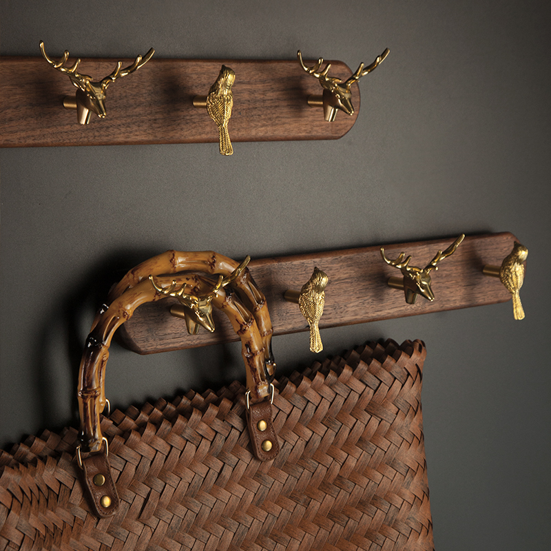 Punch-free creative retro animal head Nordic paste key hook hanger hook brass wall decoration coat hook
