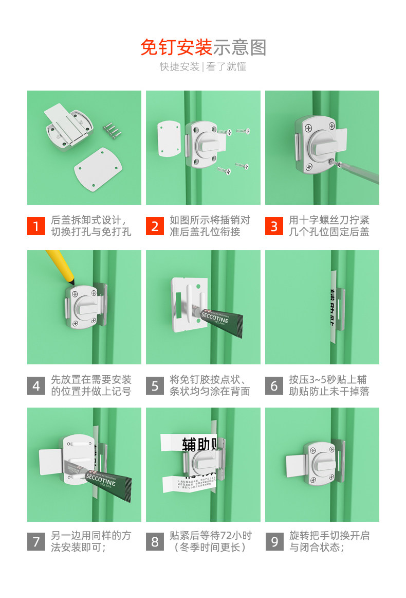 Punch-free door lock toilet dressing room artifact pull door lock keyless latch indoor shift door card lock buckle