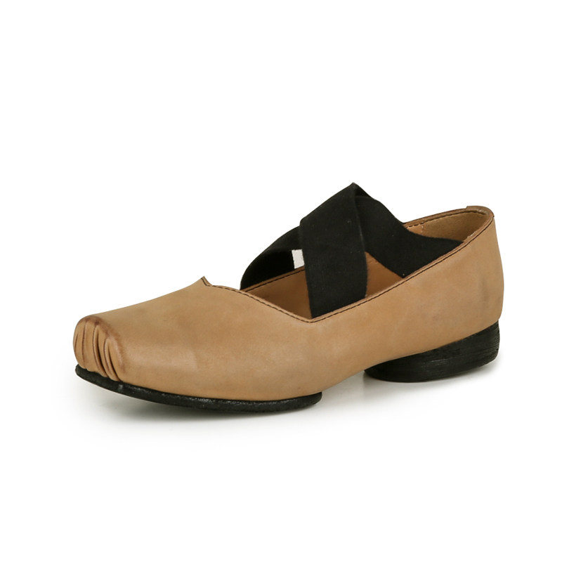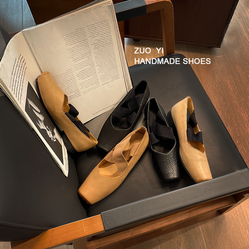 Handmade shoes zuoyi left has women's shoes ballet shoes retro cross straps square toe leather bag shoes flat shoes women