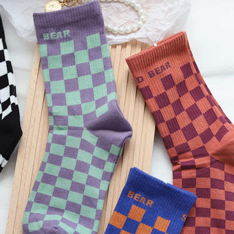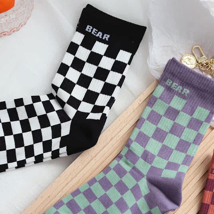 Pull - out Special Spring and Autumn Cotton Socks Black and White board plate in stockings and leisure sports teenage socks