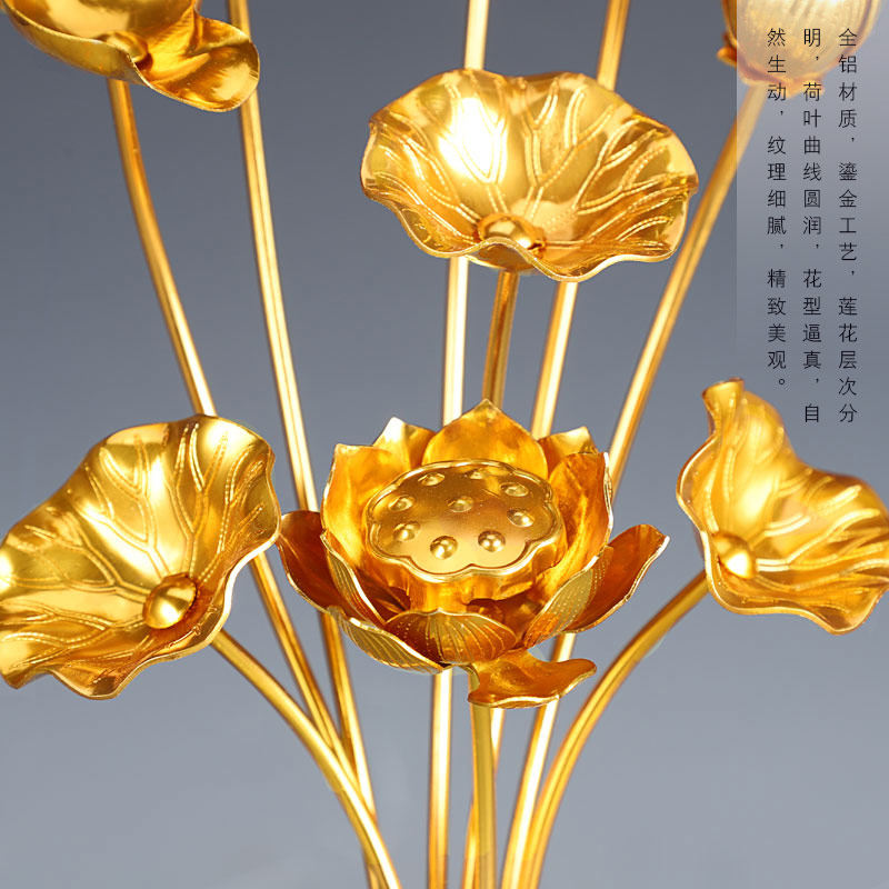 Buddha front for flower emulation Flower Lotus Flower Buddhist Hall Decorative Living Room Golden Lotus Flowers Fake Flowers with vase for Buddha Supplies hem