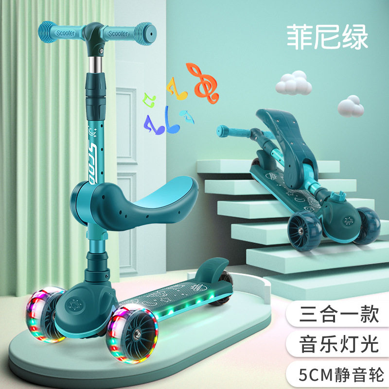 Multifunctional children's scooter foldable music flash three-wheeled scooter mute wheel baby one-legged scooter
