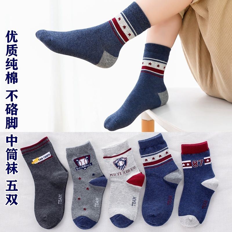 Boy Sox Spring autumn season pure cotton CUHK Children's autumn winter style Children full cotton sweat-absorbing deodorant Children in cylinder Sox boys