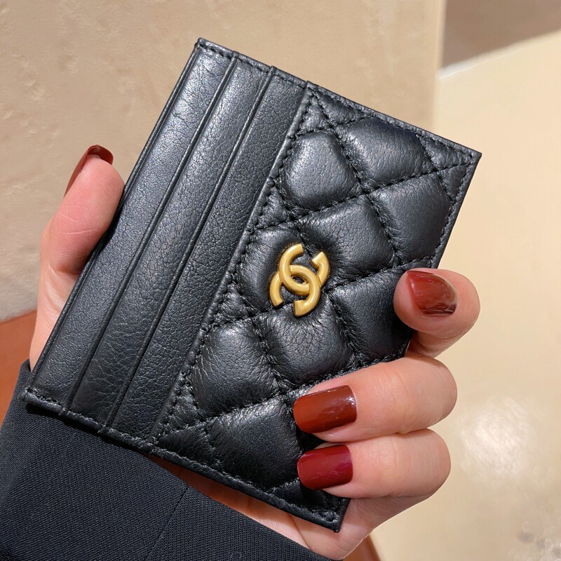 Cow Leather Card Bag Women Ultra Slim Mini Caviar Cutting Sleeve Classic Bifacial Magica Clips Brief About A Piece Of Zero Money Bag