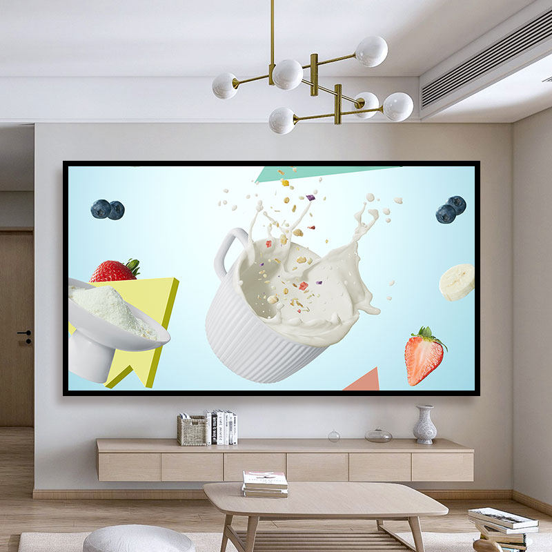 Ultra narrow frame frame curtain cloth metal anti-light curtain cloth 84100120150 inch home hanging wall HD projector curtain cloth living room ultra short Jo 4K laser TV side pitching projector screen