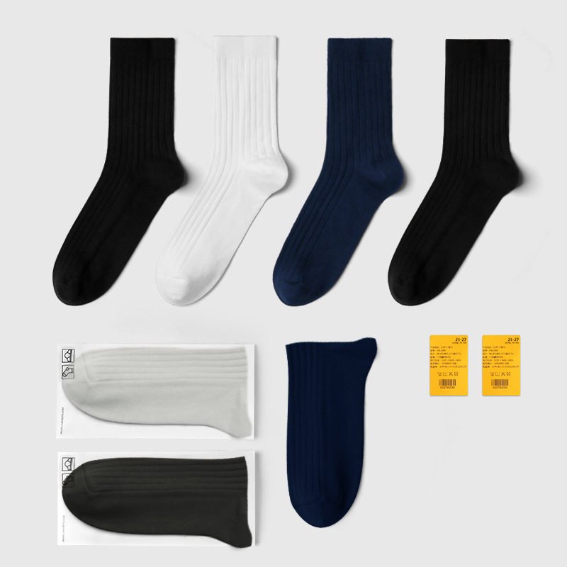 Minimalist medium cylinder pure cotton business men socks double needle antibacterial suction sweat light and breathable pro-skin leather shoes Sox lovers Sox