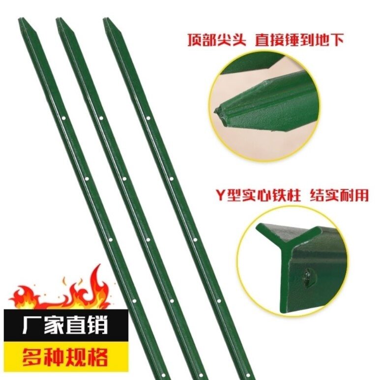 Triangular Y-shaped steel aquaculture net column cement-free barbed wire round tube green angle steel guardrail net cattle fence net column
