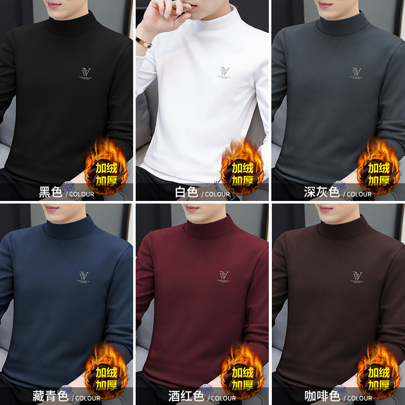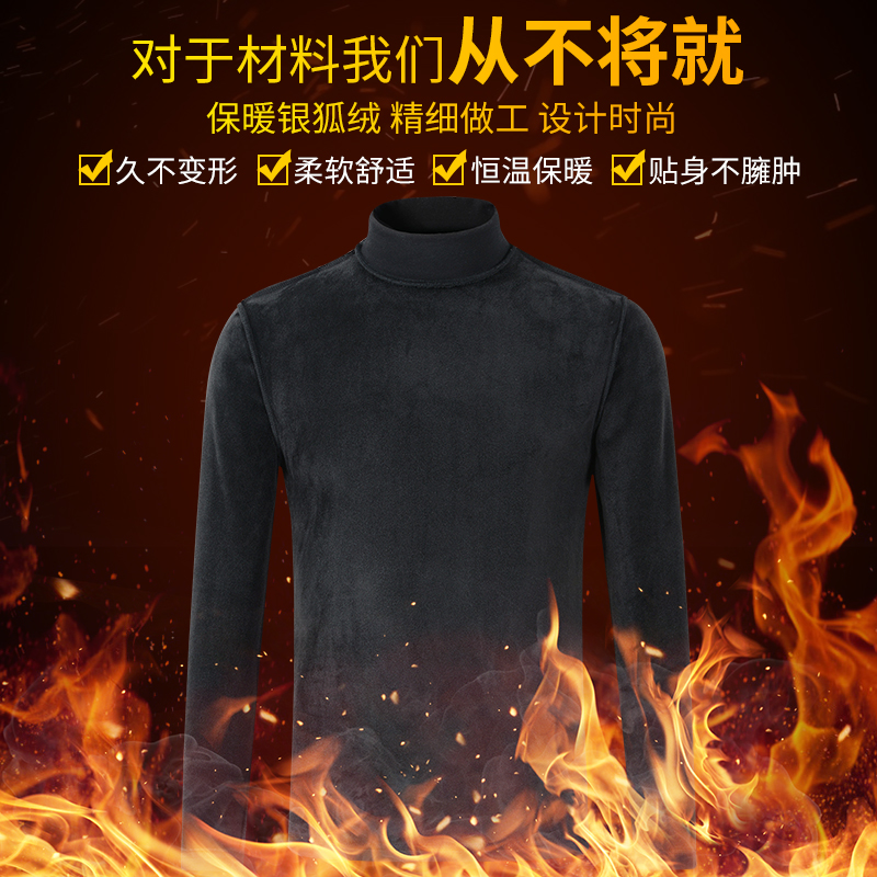 Autumn and winter Modale men's half height collar Long sleeves T-shirt Develvet plus suede thickened warm beating undershirt collar-Taobao