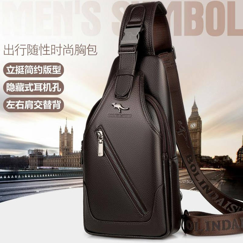 Men's bag leather single shoulder bag men's chest bag layer of casual pocket large capacity men's fashion backpack