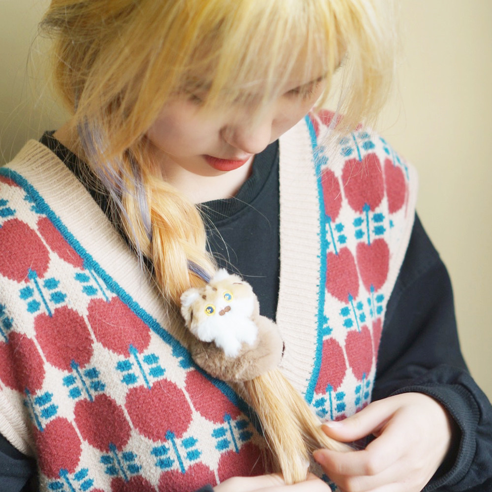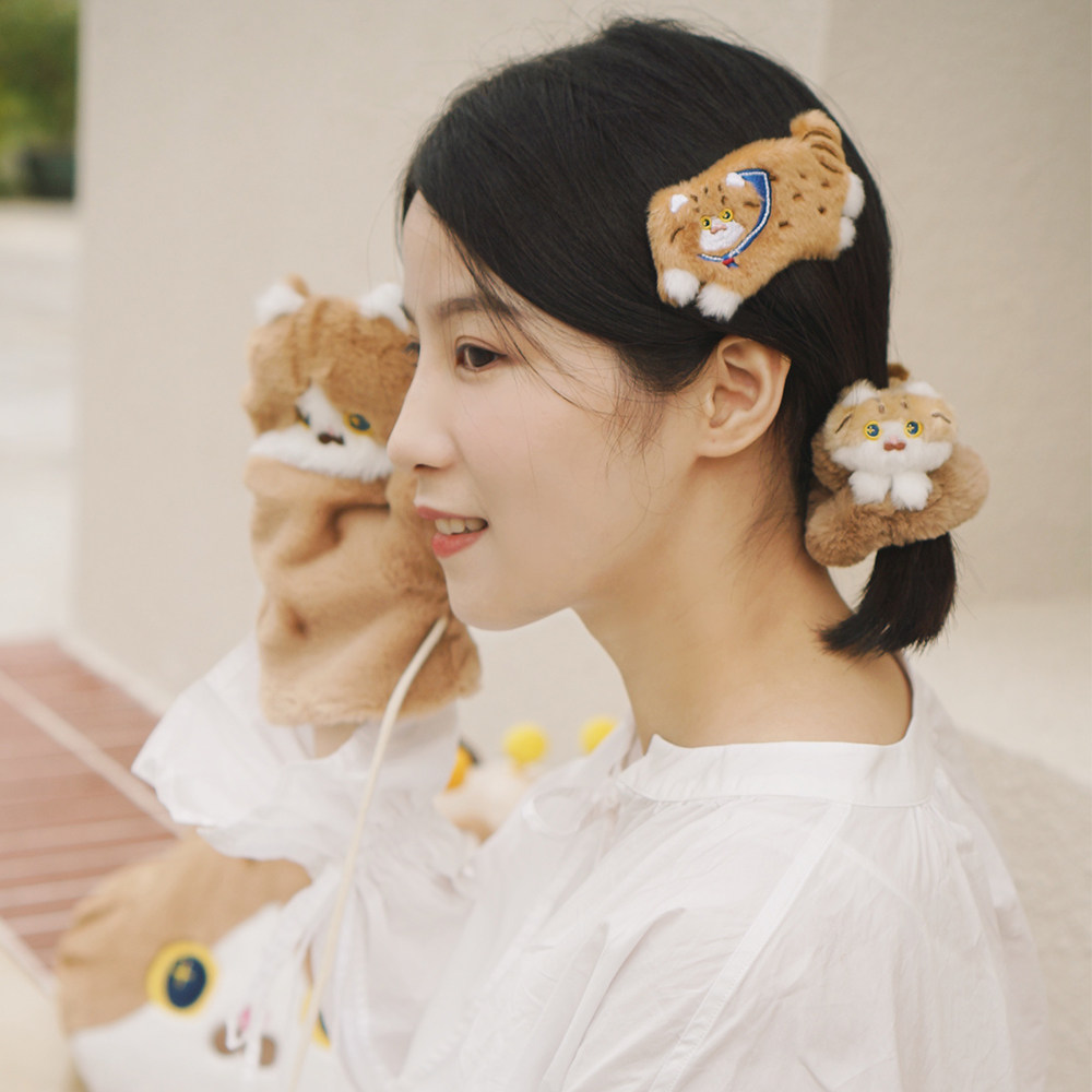 Light Gray Silver Gradient Hair Tie-The rope is looser Three-flower cat hairpin-The rope is looser The brown raccoon cat hairpin-The rope is looser A set of three hairpins