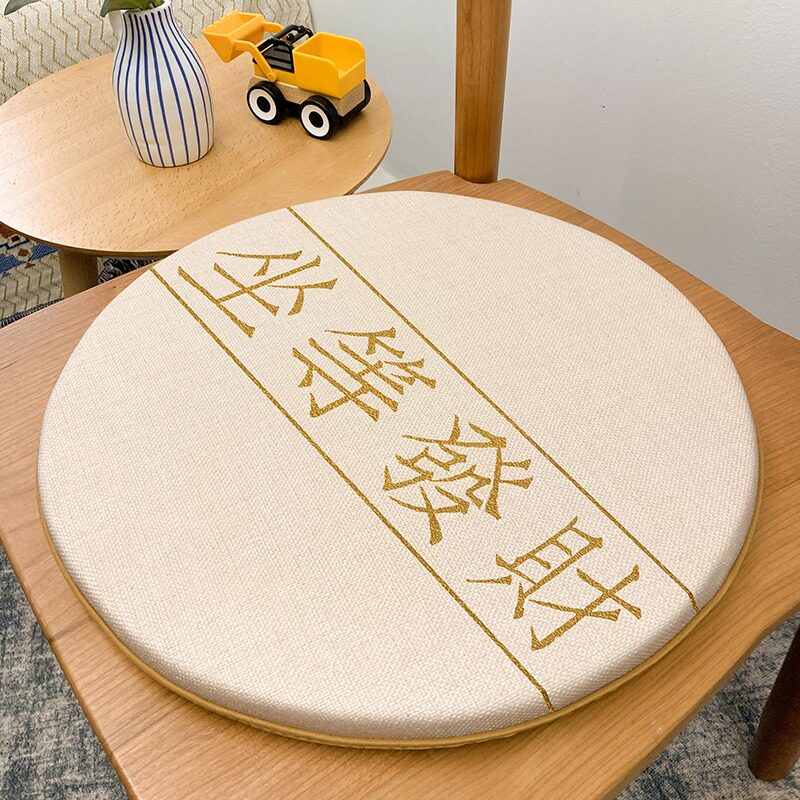 Net red New Chinese table chair cushion Windsor chair Horn Chair Round Cloth Art Non-slip Cushion Printed Cotton Linen Hotel