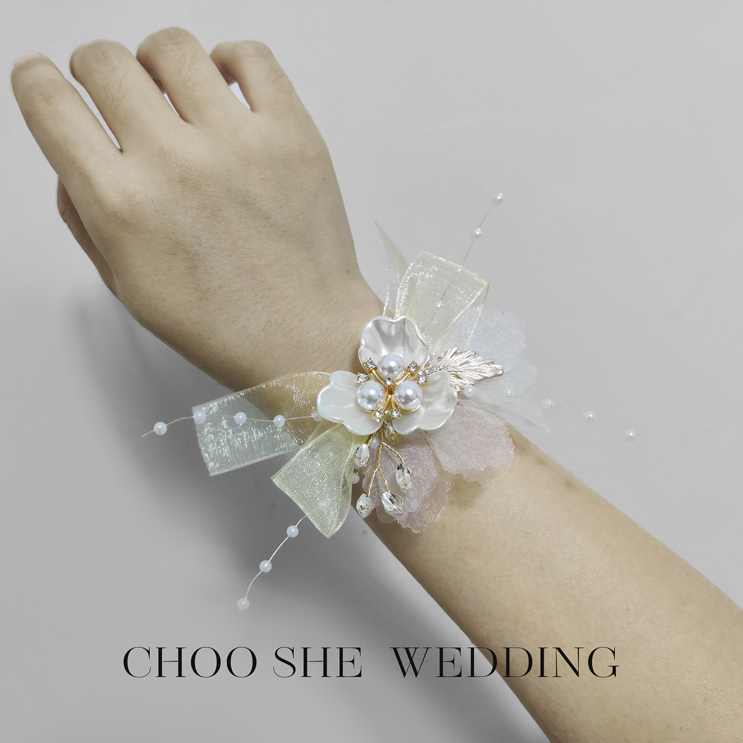 Wrist Floral Bridesmaid Sisters Group Hand Floral Advanced Sensation Light Colored Meritocracy Wedding Elastic Bracelet-Taobao