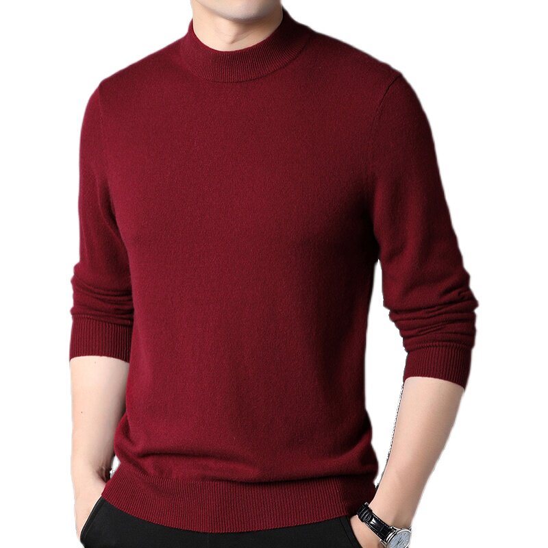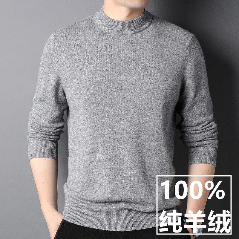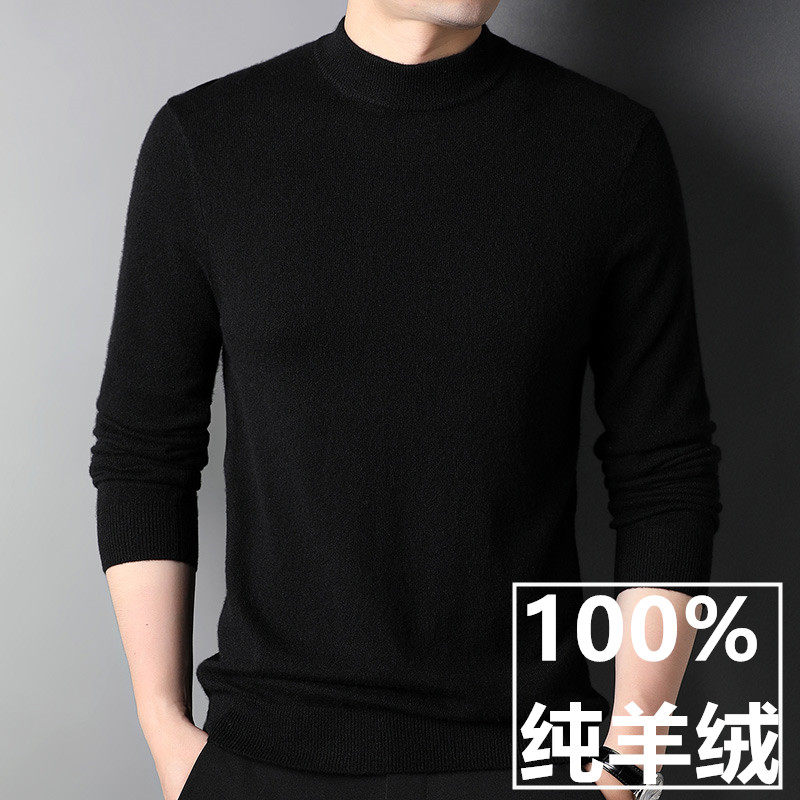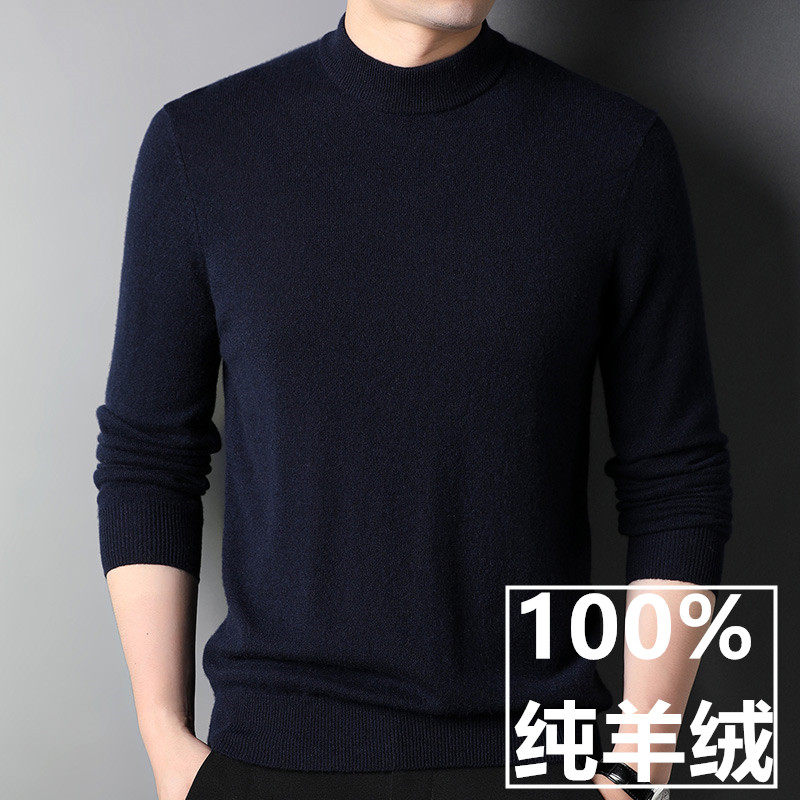 100 pure cashmere men's semi-high collar winter thickened sweater middle-aged business casual needle-weaters jersey-bottom cashmere
