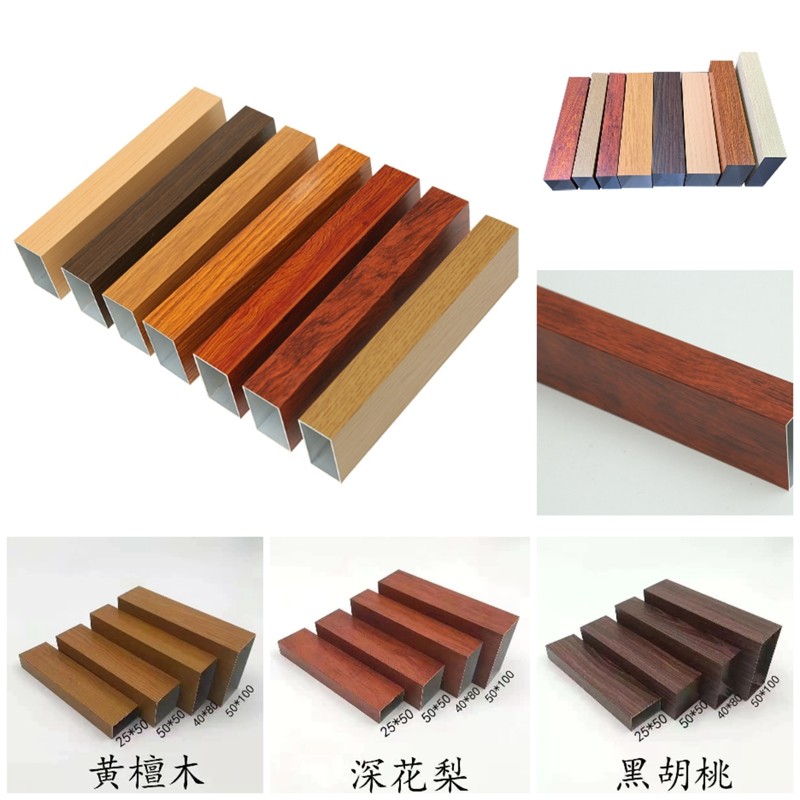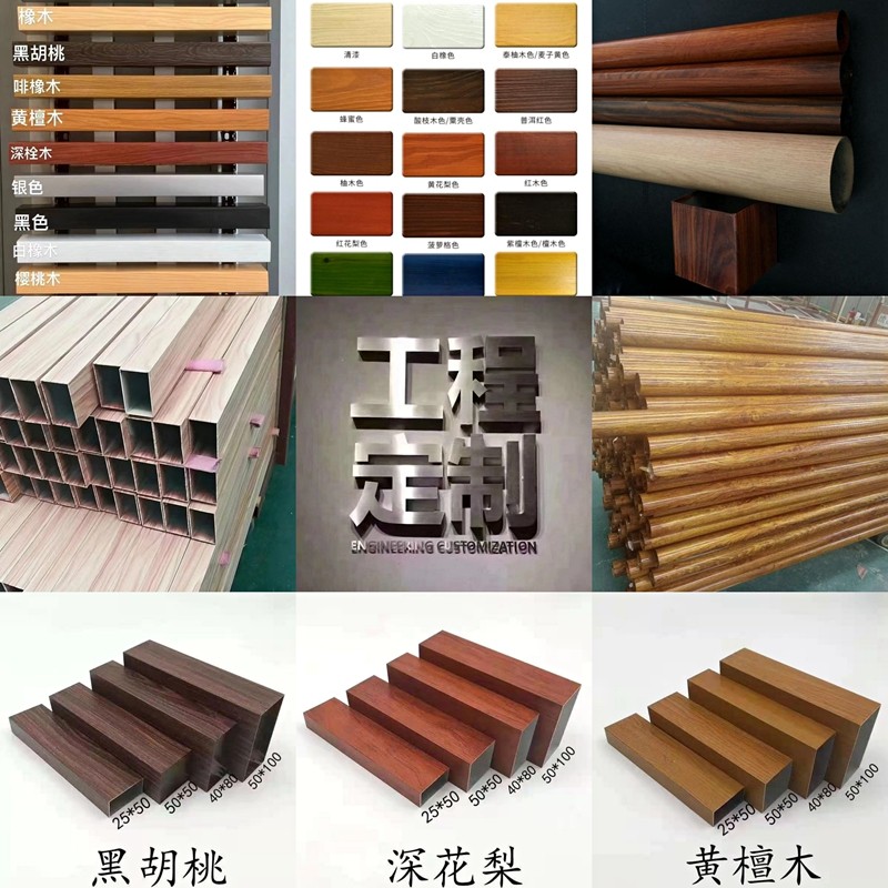 Stainless steel imitation oak grain square tube round tube heat transfer red and yellow rosewood galvanized walnut stair handrail guardrail
