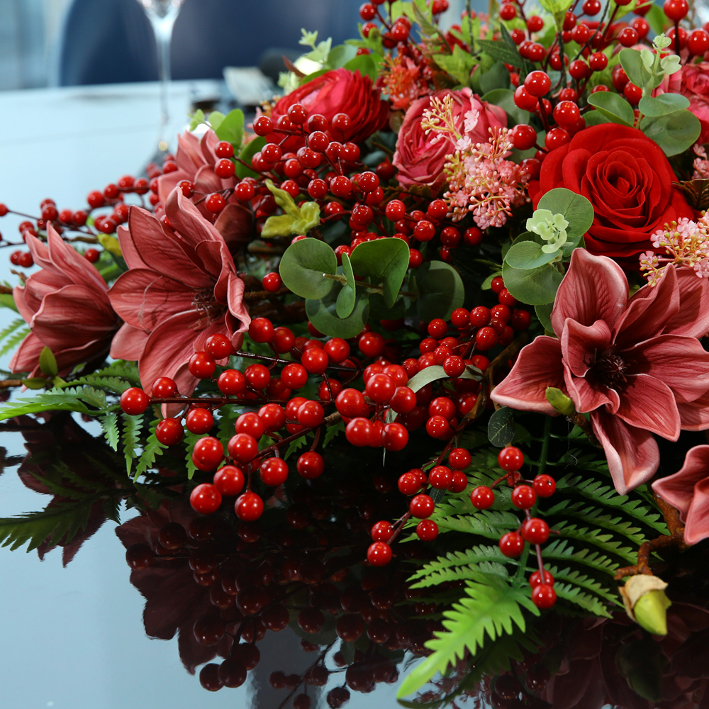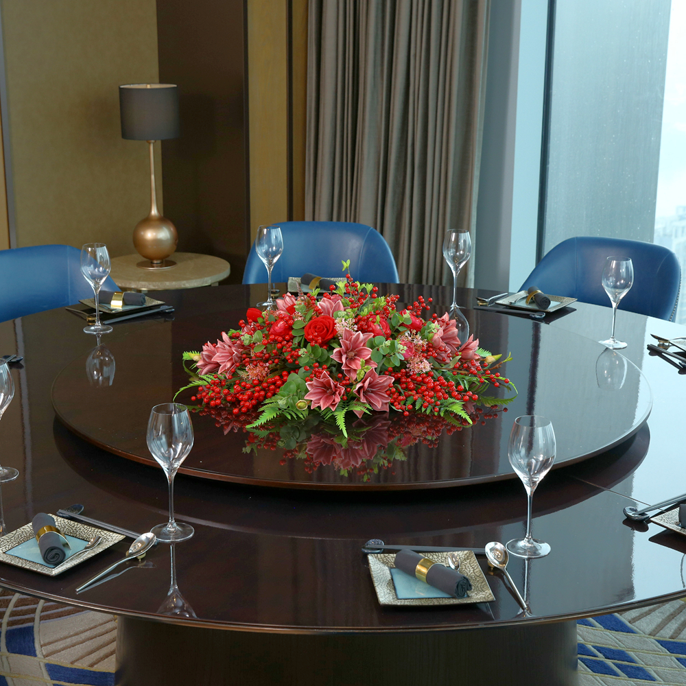 Hotel new Chinese dining table flower big round table turntable center decoration high-end dining room Spring Festival simulation flower decoration flower