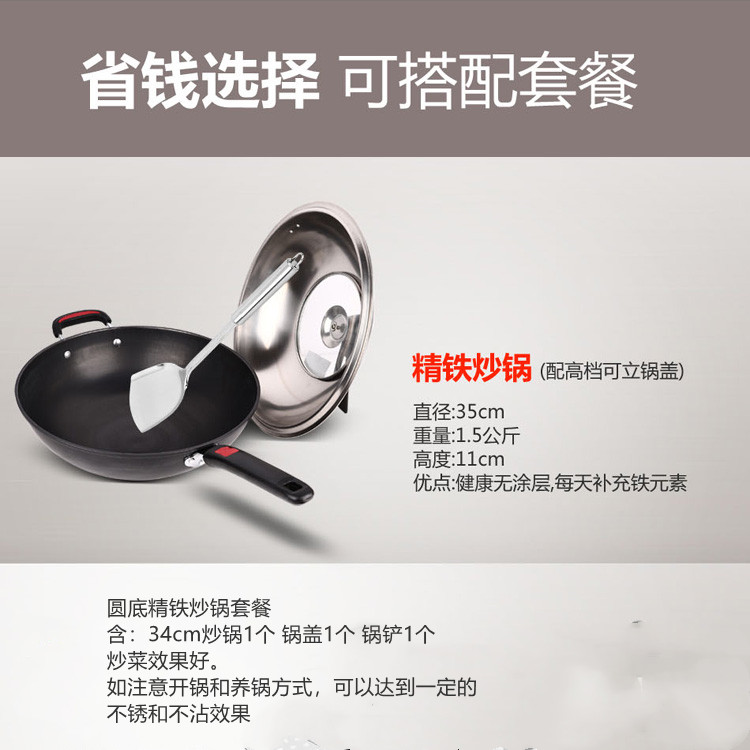Flat bottom 32CM fine iron frying pan package flat bottom 34CM stainless steel frying pan package round bottom 34CM fine iron frying pan package round bottom 34CM stainless steel frying pan package