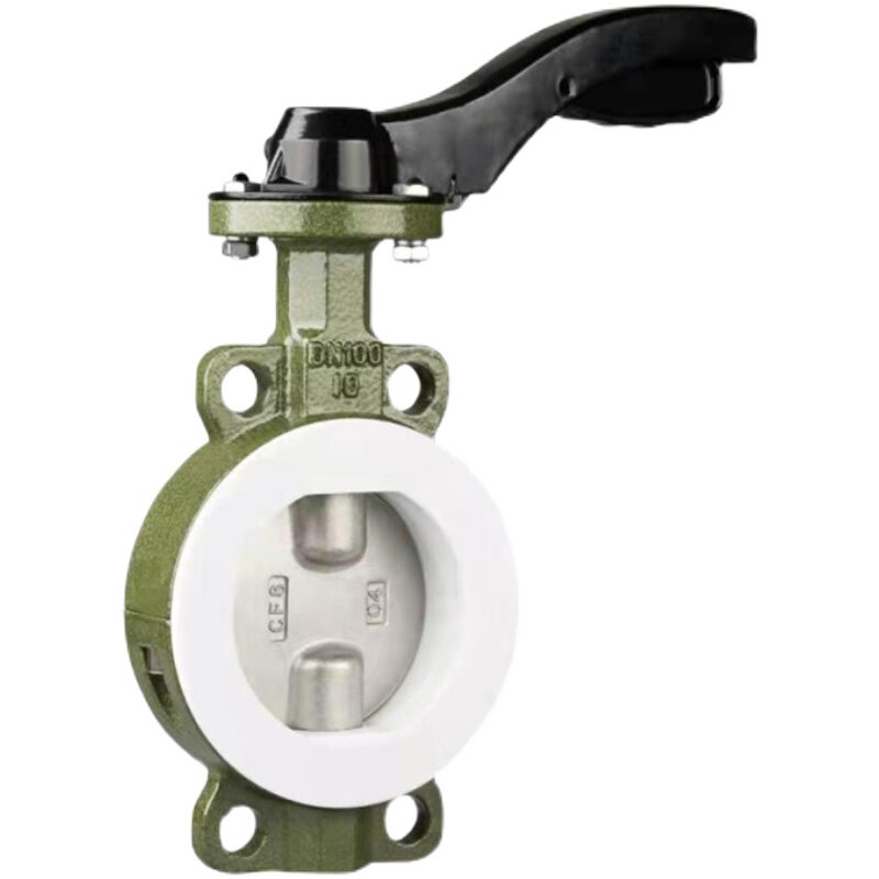 D71F46-16C Corrosion-resistant acid and alkali-resistant cast steel fully lined with fluorine manual handle wafer type PTFE butterfly valve DN50-200