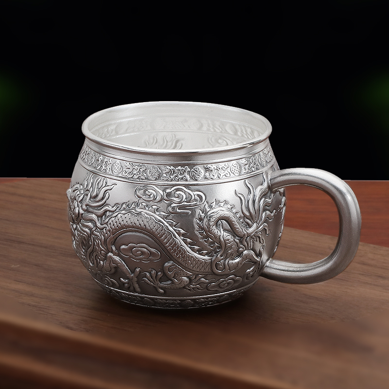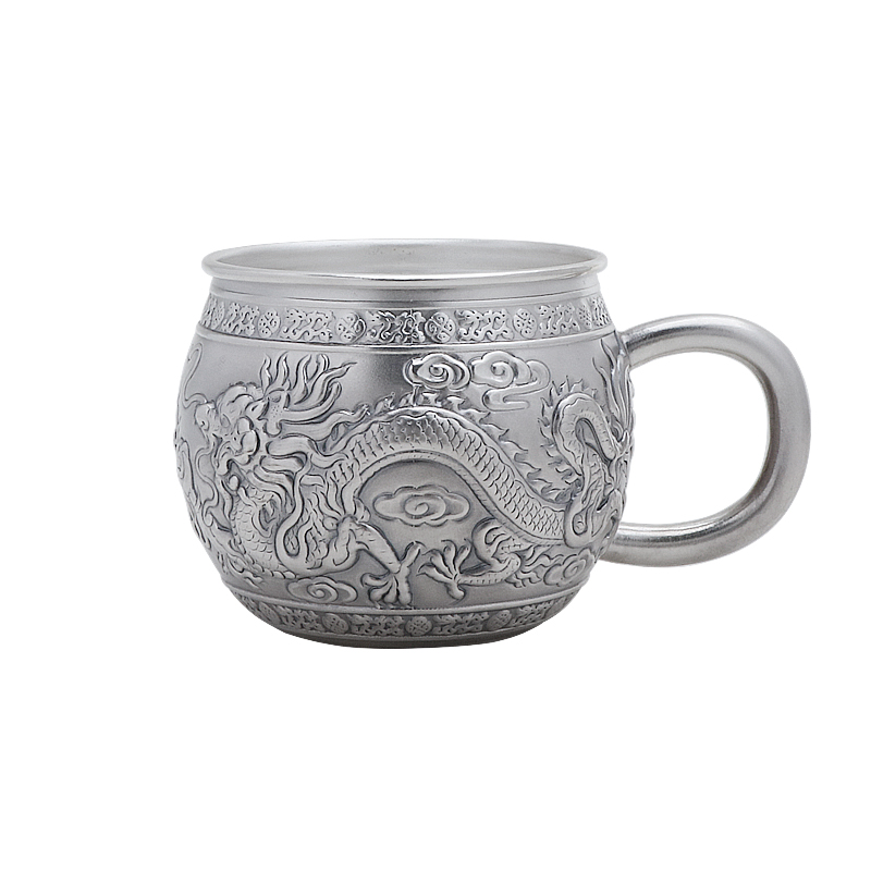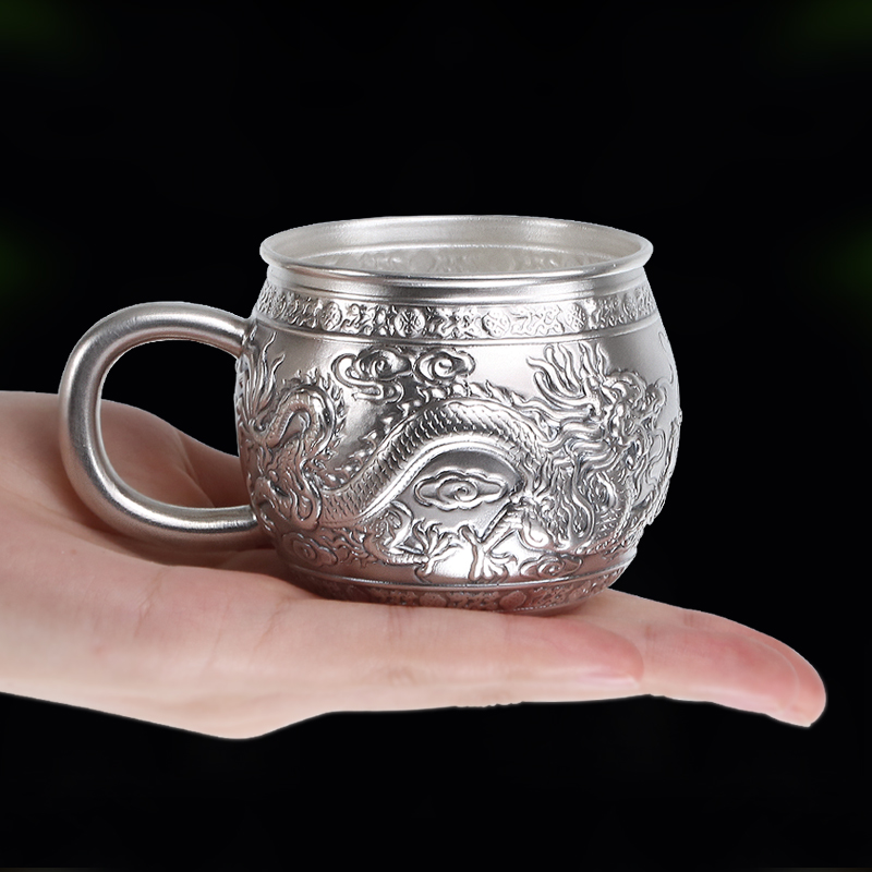 Taian Silver Industry Pure Silver 999 Mark Cup Hammer Grain Coffee Large Capacity Tea Cylinder Cup Kongfu Tea Furniture
