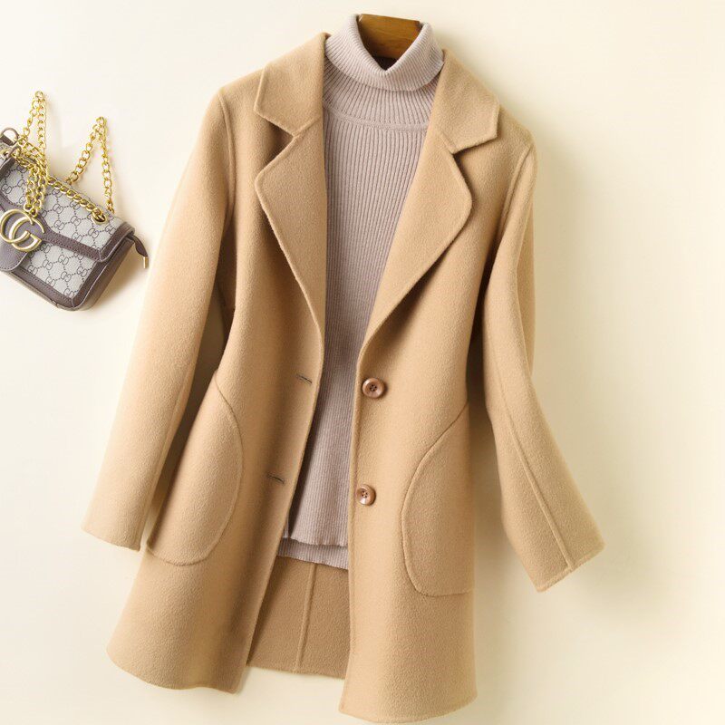 Double-sided woolen coat women's high-end small 2021 new trendy winter large size thickened mid-length cashmere coat