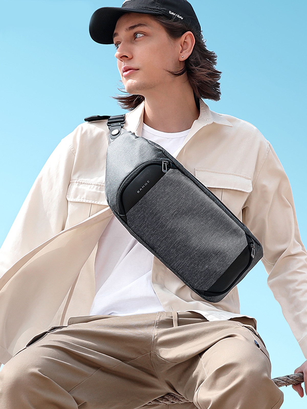 BANGE Class Song Men Light Thin Breast Front Bag Single Shoulder Diagonal Satchel Fashion Casual Travel Han Edition Sports Tide