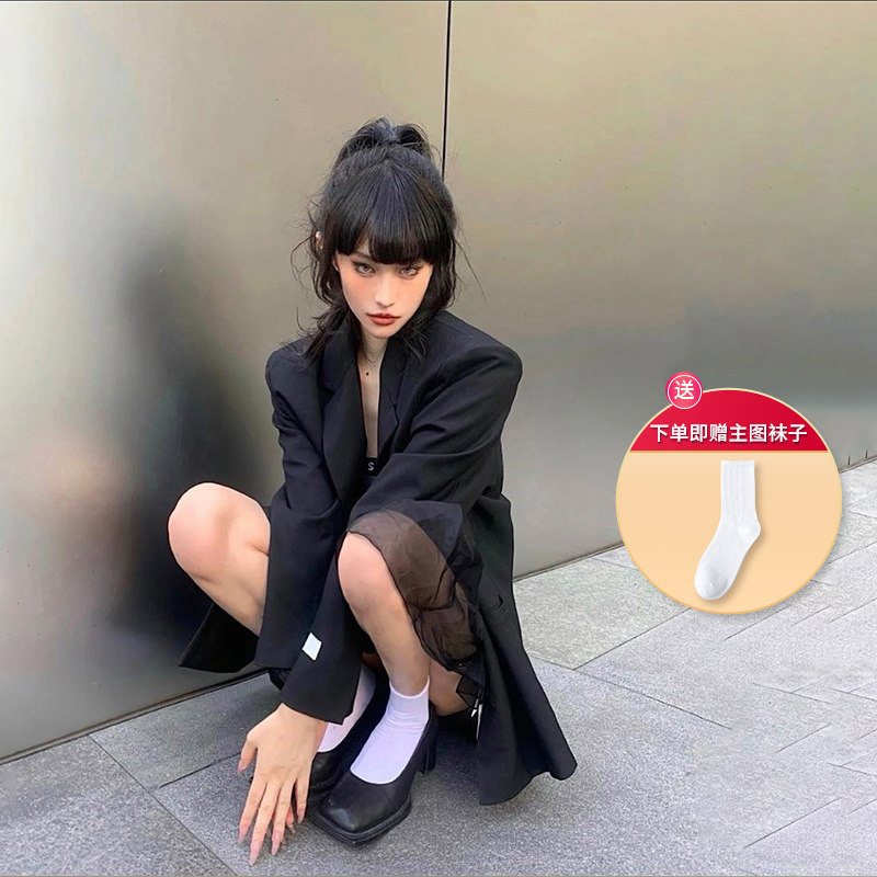French square toe high heels design sense niche temperament thick heel retro sweet cool Mary Jane single shoes women's small leather shoes summer