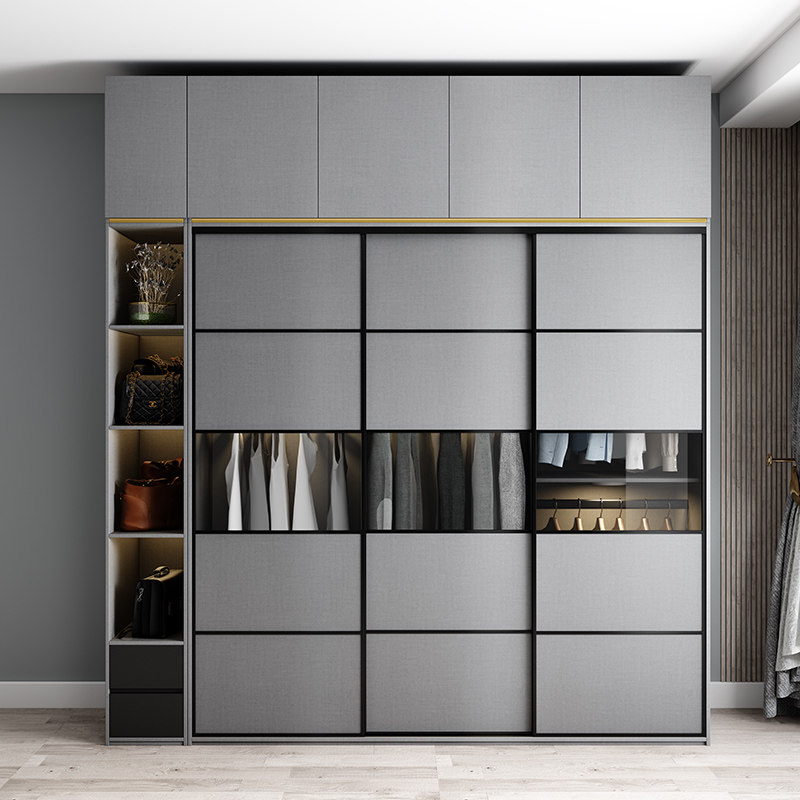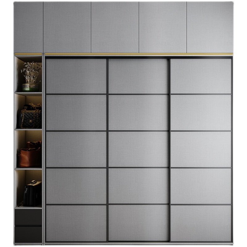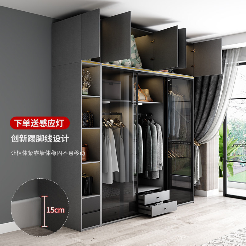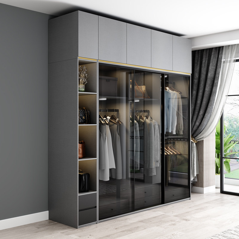 Light luxury wardrobe modern minimalist glass door wardrobe economical sliding door cabinet combination three-door bedroom corner