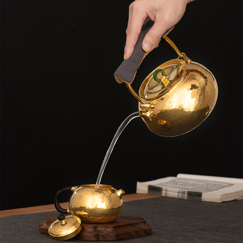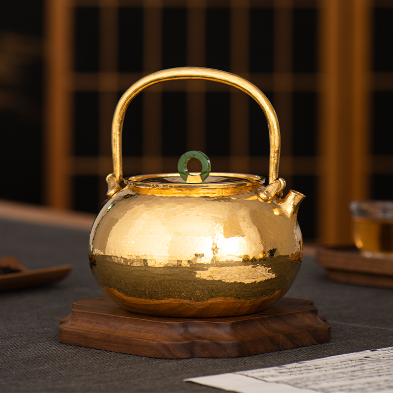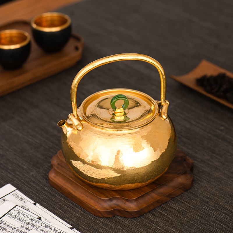 Silver Age pure gold pot kettle pure handmade one hit Japanese court style home tea set foot gold boiling kettle