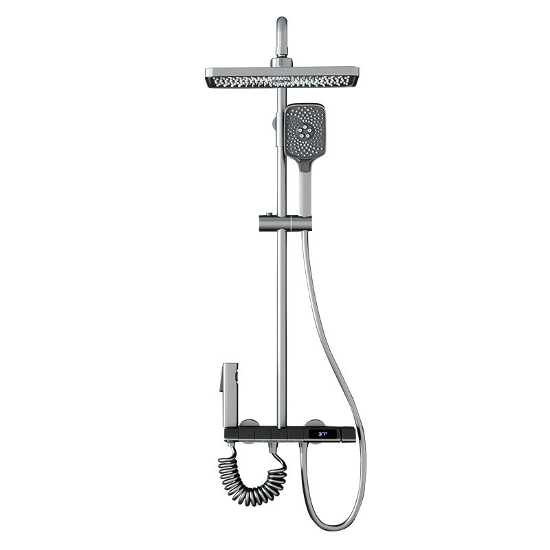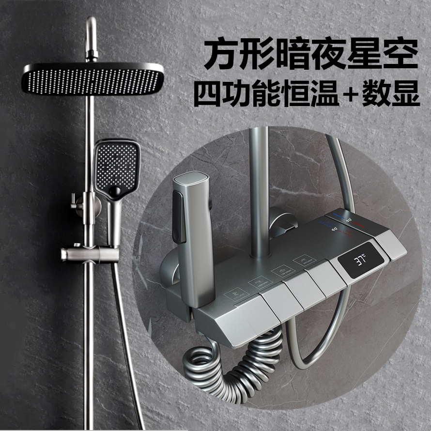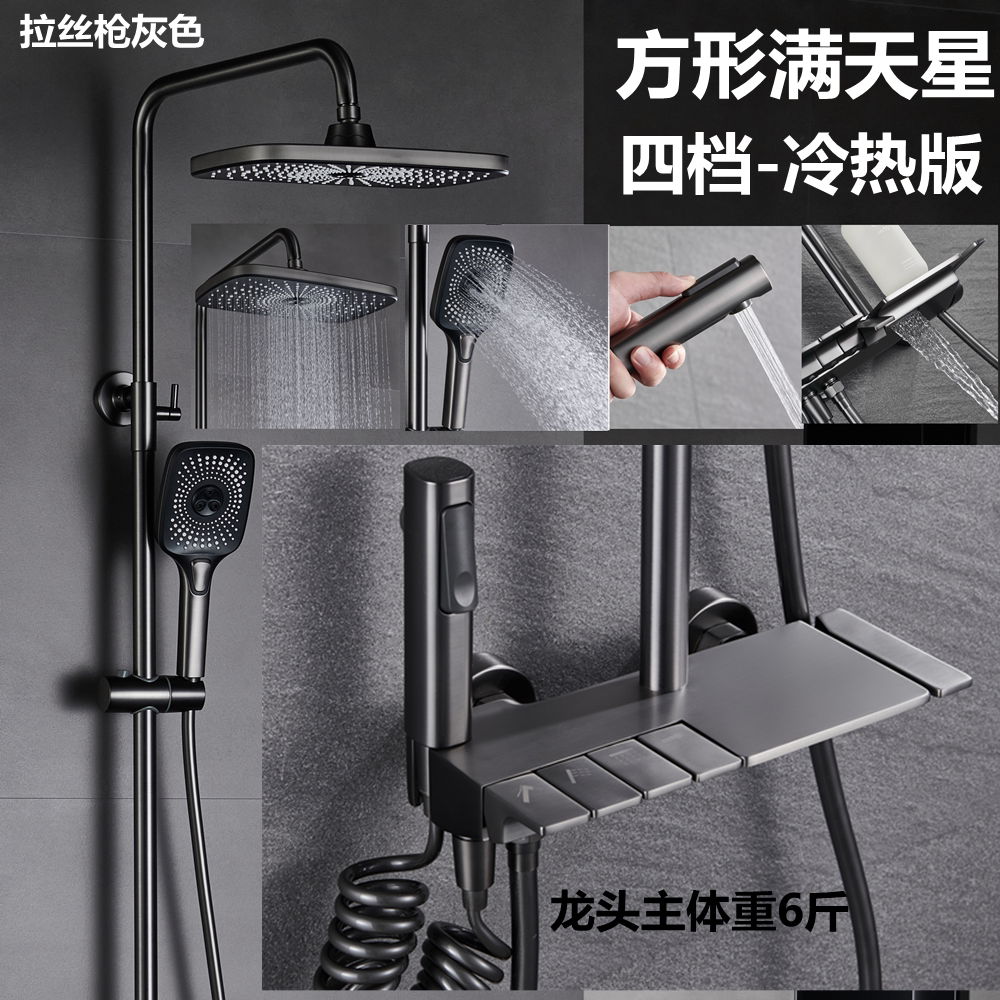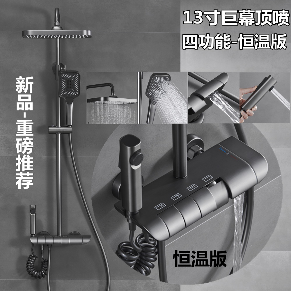 German Gun Grey Piano Key Shower Head Shower Kit Bathroom full copper thermostatic number of hot and cold booster shower
