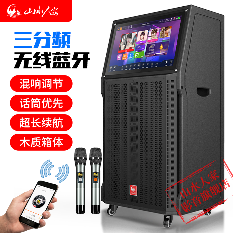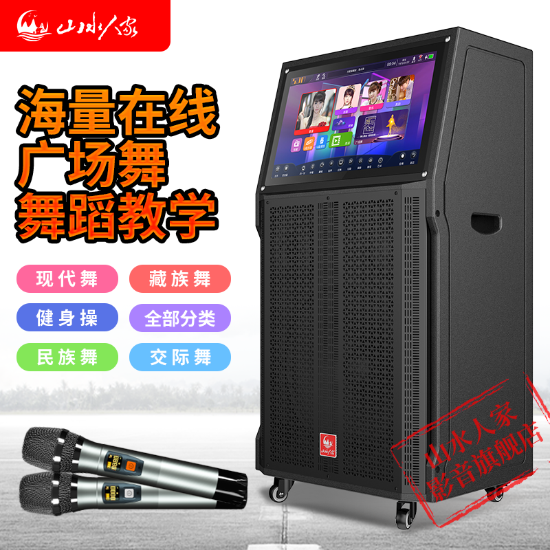 Shanshui people's high-power outdoor singer home K song song video audio square dance pull rod Bluetooth speaker