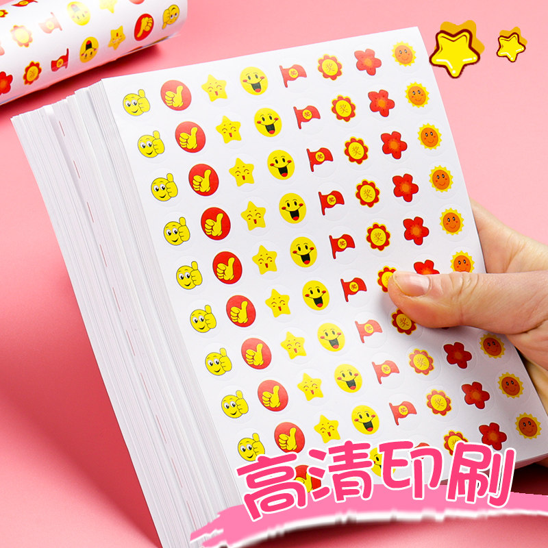 Children Reward Stickers Praise Sticker Elementary School Kids Kindergarten Small Red Flowers Pentagram Thumbs small stickup with smiley face teachers adorned with special cartoon stars 1st grade baby cute decoration little pattern