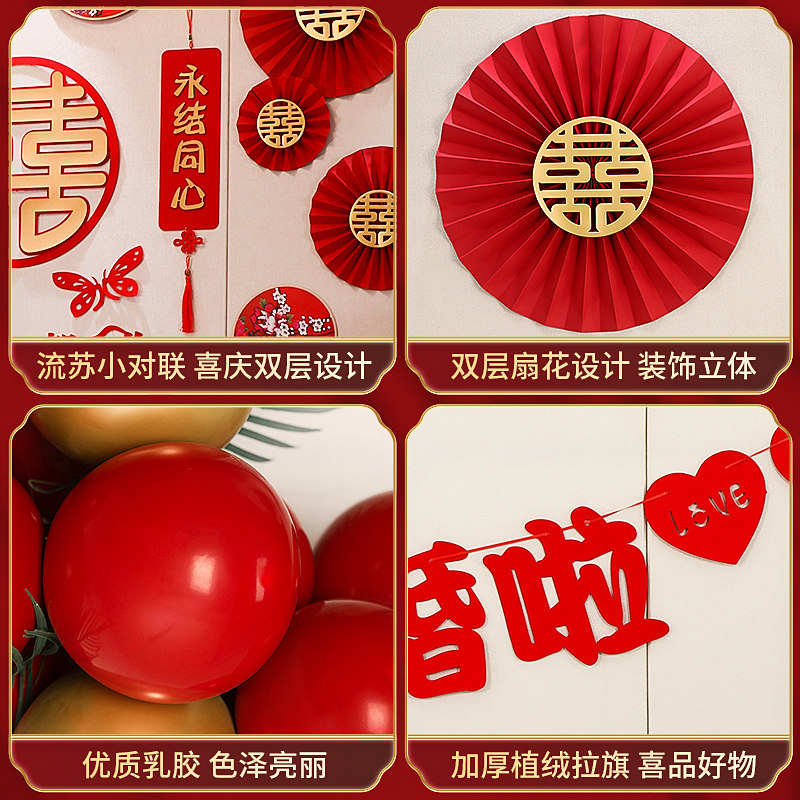 Wedding supplies Daquan wedding room bedroom layout set wedding living room pull flower decoration wedding new house happy word package
