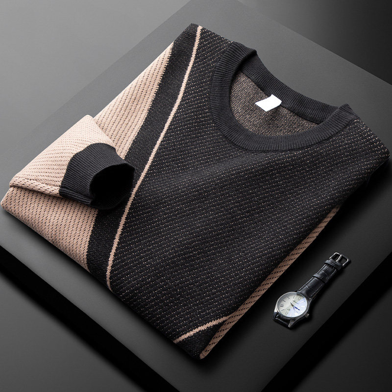 2021 trend light luxury fashion contrast color men's sweater autumn and winter thick warm youth all-match bottoming sweater