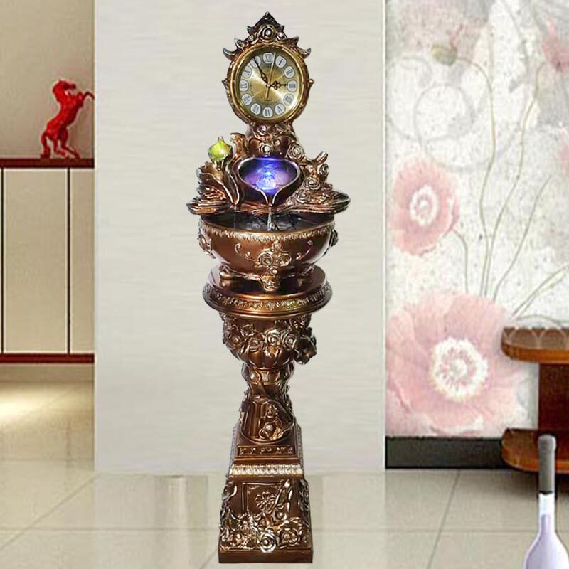 Living room floor clock European-style flowing water fountain floor pendulum with water view fountain Creative Merchants Opening Gift Decorations