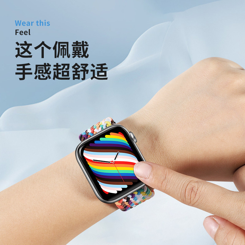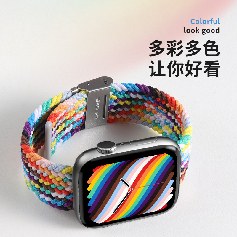 Zhongge suitable for Apple watch7 6 SE 5 4 3 generation Apple watch strap rainbow nylon braided iwatch men and women sports loop universal 38