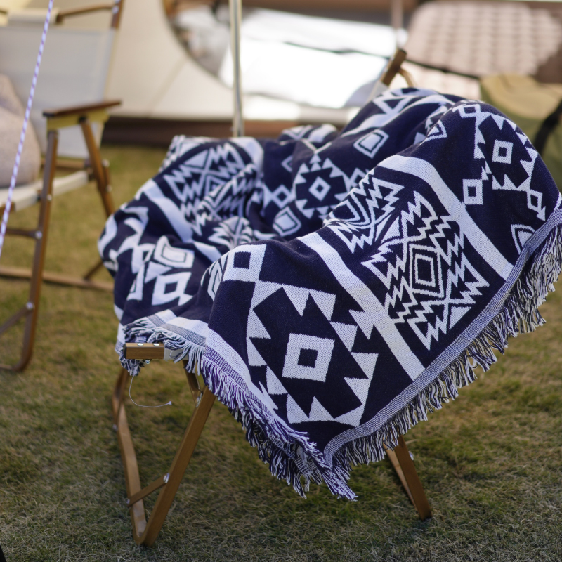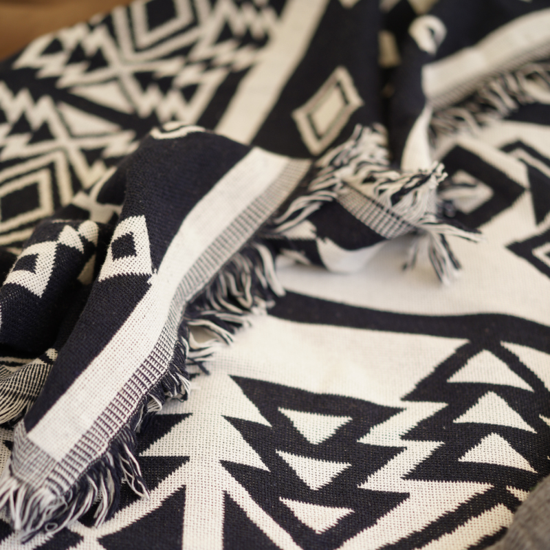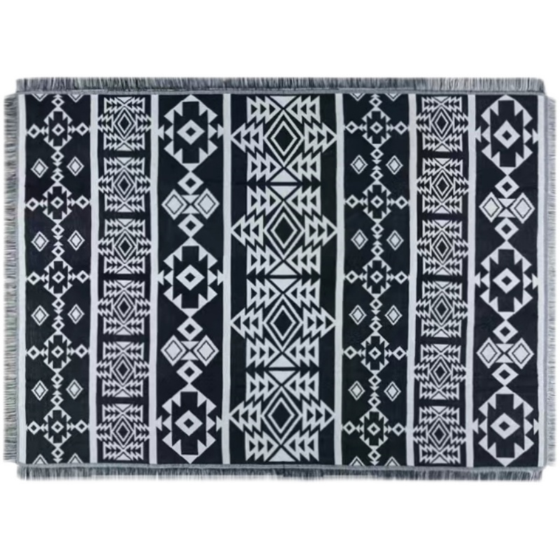 Outdoor camping blanket black and white rhombic retro sofa blanket rug Nordic cotton sofa towel tent blanket
