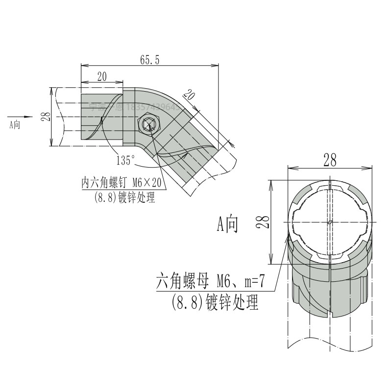 135-degree inner joint D28mm third generation wire rod manufacturer aluminium alloy fine tube aluminium tube profile connector fittings