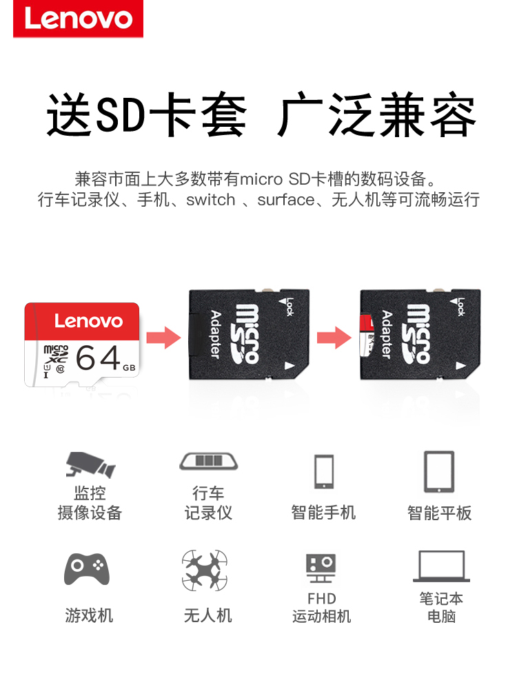 Lenovo 64g memory card tf card micro sd card mobile phone memory card wagon recorder memory special card high speed flash memory 64gtf card Xiaomi surveillance photographic lens universal 6