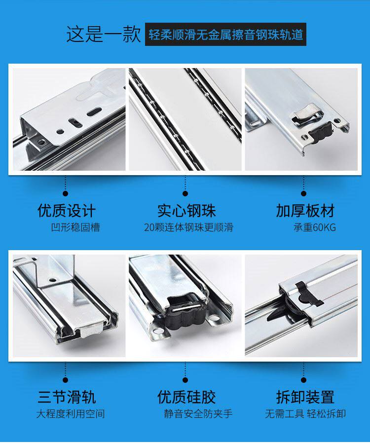 Kitchen Pull Basket Track Slide Rail Thickened Special Bottom Mount Slide Rail Drawer Type Three-section Kitchen Bowl Tray Cabinet Sink Pull Basket
