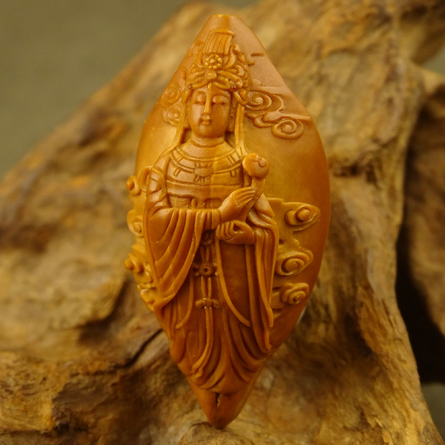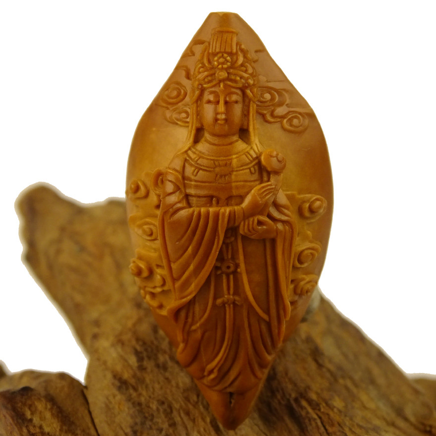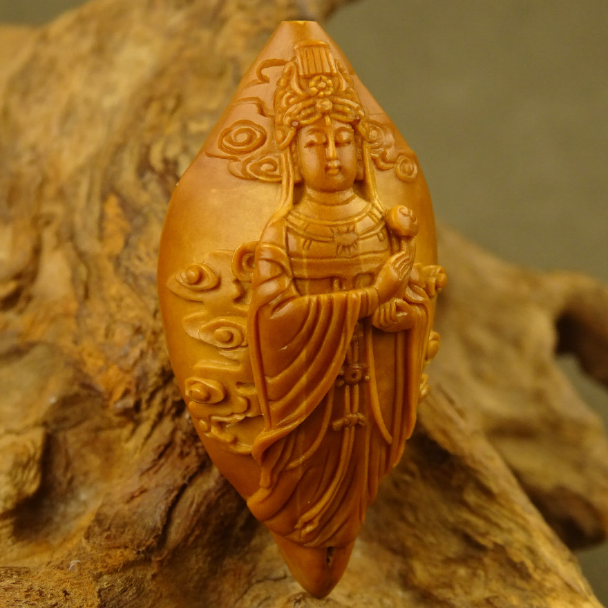 Pure hand carving "Mazu Empress" Zhoushan olive walnut carving new single seed literary play collection ZQZJF
