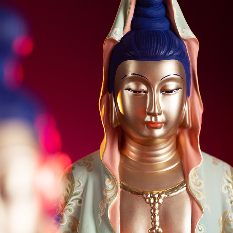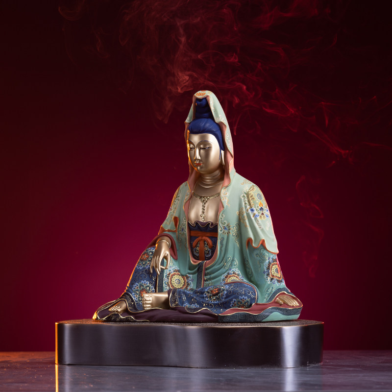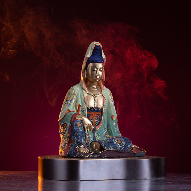 Zhu Bingren copper draped Guanyin sitting Guanyin ornaments Buddha statues home decorations home decorations bronze carving gifts