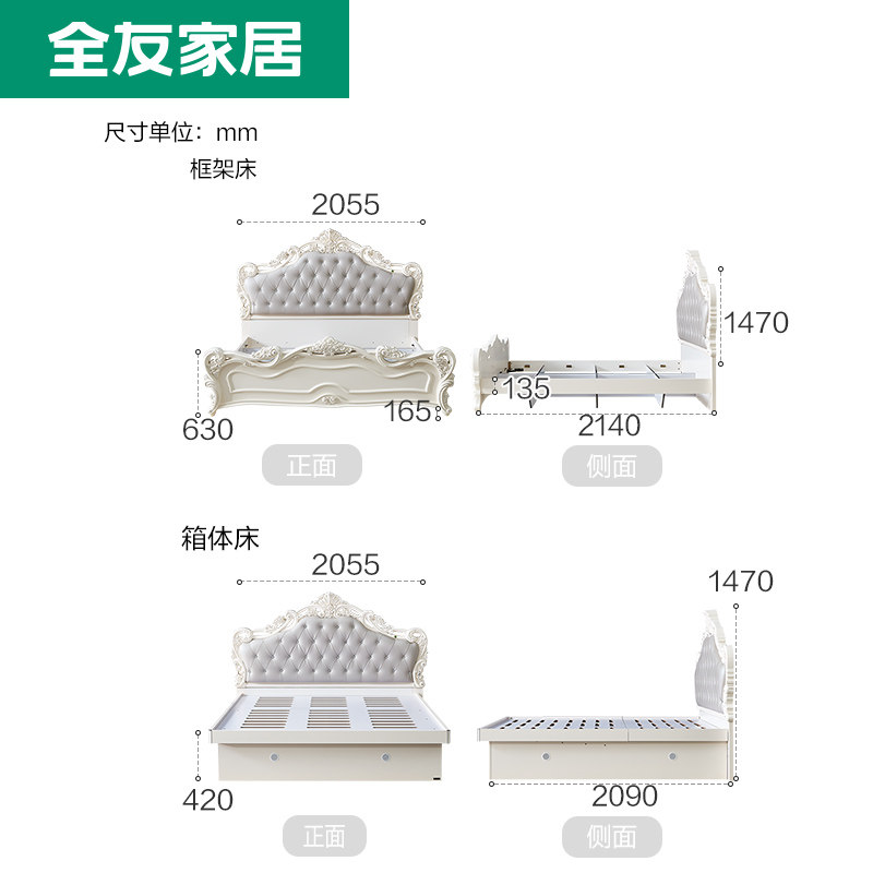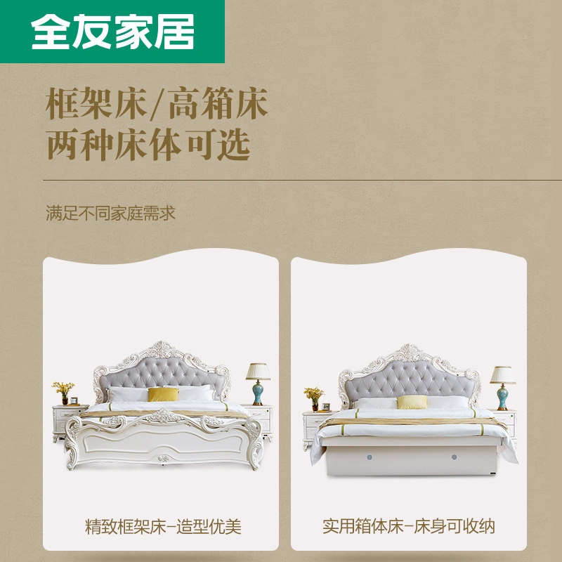 Quanyou home furnishing 1 8 meters double bed master bedroom European style wedding bed high box storage bed furniture set combination