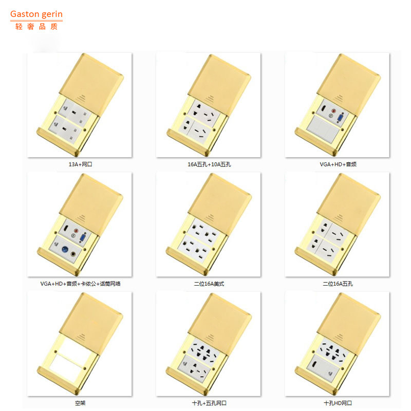 Melan Full Copper Flat Push Sliding Cover Type Waterproof Ground Socket Six Holes Multifunction Three-Three Holes twelve Holes Ground Floor Insert