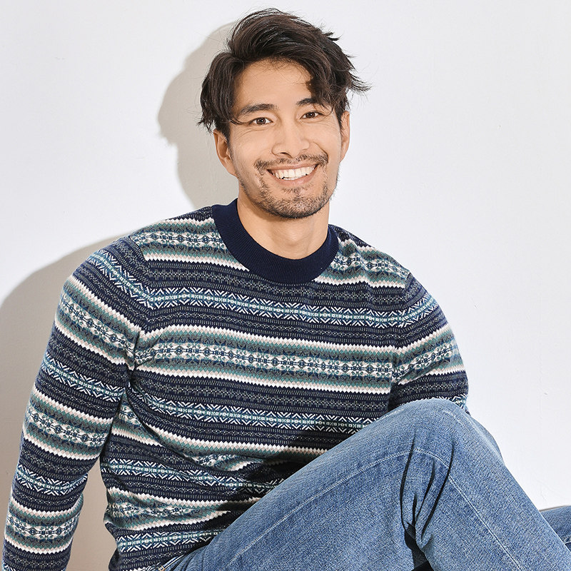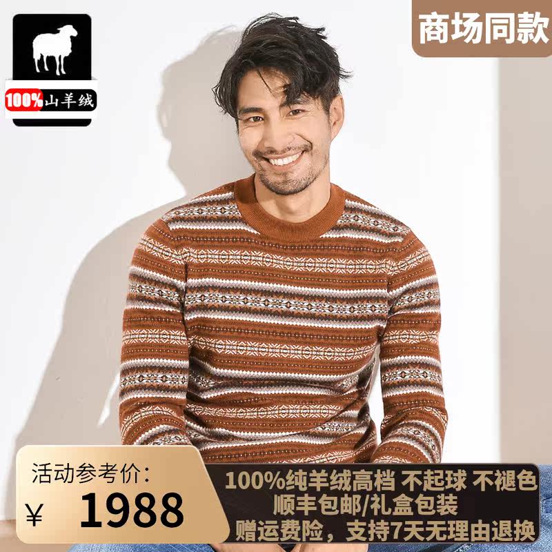 Ordos produced winter high-end pure cashmere sweater male neck thickened sweater in Youth retro trend blouse
