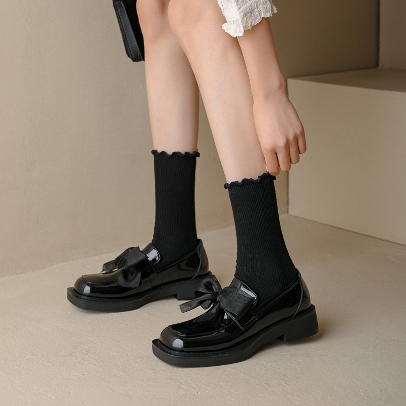 Bright Lacquer Leather Students Small Leather Shoes Women 2022 Spring New Butterfly Knots Flat-bottomed Lefu Shoes Sloth People A Foot Pedal Single Shoes