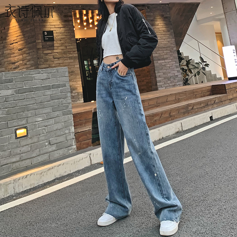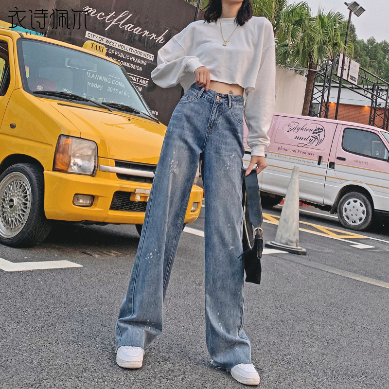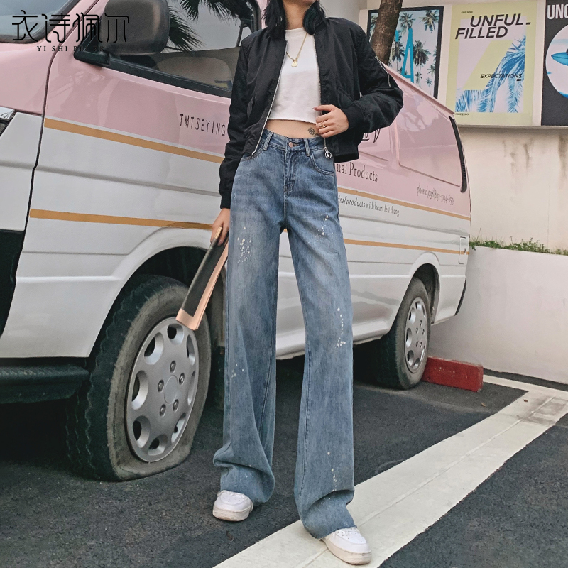High-waisted wide-leg jeans women's thin 2022 spring new straight loose drapey mopping rough trousers trend